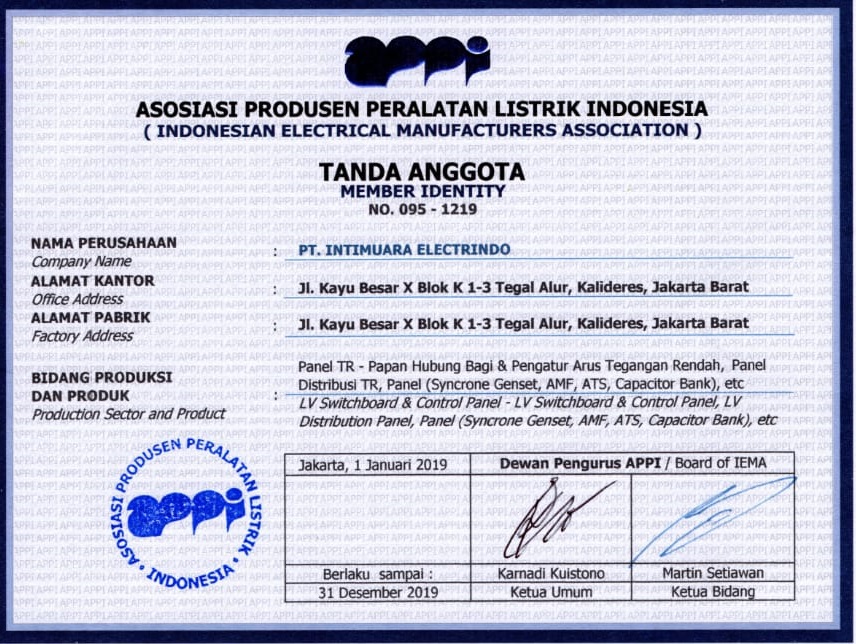 Certificate Asosiasi Produsen Peralatan Listrik Indonesia Panel Tegangan Rendah (APPI TR) Asosiasi Produsen Peralatan Listrik Indonesia Panel Tegangan Menengah (APPI TM) Lembaga Pengembangan Jasa Konstruksi (LPJK) Lembaga Pengembangan Jasa Konstruksi (LPJK) Asosiasi Kontraktor Listrik Dan Mekanikal Indonesia (AKLI) ASEFA CERTIFICATE IEC ASEFA CERTIFICATE IEC ASEFA CERTIFICATE IEC ASEFA CERTIFICATE IEC ASEFA CERTIFICATE IEC PANEL PRISMA TYPE L-M SYSTEM PARTNER CORE COMPONENT